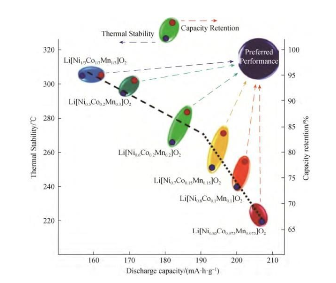 NCM 中,鎳是主要的氧化還原反應(yīng)元素,因此,提高鎳含量可以有效提高NCM 的比容量。高鎳含量NCM材料(Ni的摩爾分數(shù)≥0.6)具有高比容量和低成本的特點,但也存在容量保持率低,熱穩(wěn)定性能差等缺陷。高鎳 NCM 材料的性能和結(jié)構(gòu)與前驅(qū)體的制備工藝緊密相關(guān),不同的條件直接影響產(chǎn)品的最終結(jié)構(gòu)和性能。
