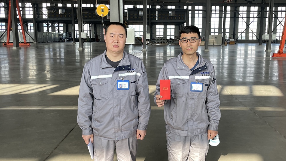 秦皇島曼國(guó)裝備科技有限公司3月31日,在曼國(guó)廠區(qū)表彰了生產(chǎn)部的2位先進(jìn)模范,并頒發(fā)了獎(jiǎng)金。